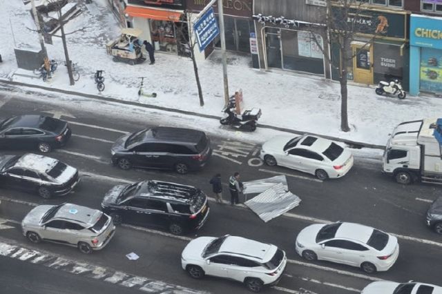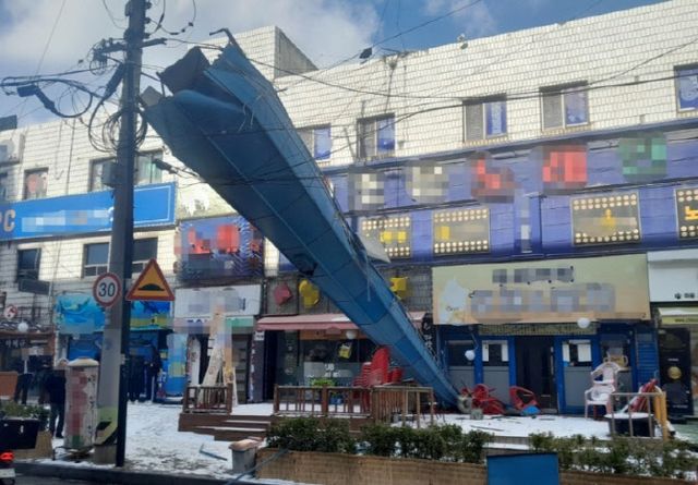 또 이날 오전 9시 8분쯤 대전 서구 둔산동에서는 한 건물에서 양철판 구조물이 도롯가로 떨어졌다는 신고가 접수됐다.