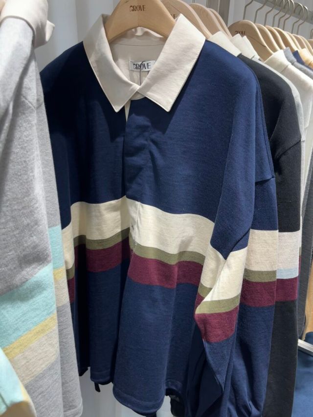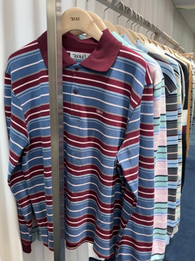 여길 봐도 스트라이프, 저길 봐도 스트라이프인 이유가 있습니다. 이번 컬렉션은 그로브가 자체 개발한 스트라이프 패턴을 사용했기 때문인데요. 뿐만 아니라 그로브 최초로 유니섹스 라인을 선보이는 시즌이기도 하죠.