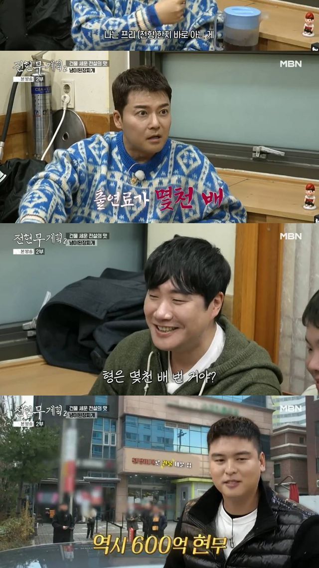 전현무는 이에 "같은 데를 또 갔는데 출연료가 몇천 배가 돼있으니까"라고 말했고, 이에 당황한 배성재는 "형은 몇천 배를 번 거야?"라고 말해 웃음을 안겼다. 이어진 화면에서 이장우가 전현무에게 "형은 600억이 있으니까"라며 600억 재산설이 언급돼 웃음을 더했다. 최근 김대호 아나운서가 MBC를 퇴사하며, 프로그램 '4만원 출연료'가 주목받았고, 이후 수입과 행보에 대해서도 높은 관심이 이어지고 있는 터라 더욱 눈길을 끌었다.