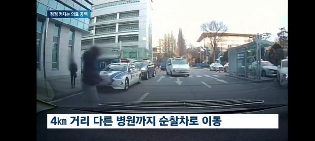 순찰차를 타고 가까운 건국대학교 병원으로 갔습니다.