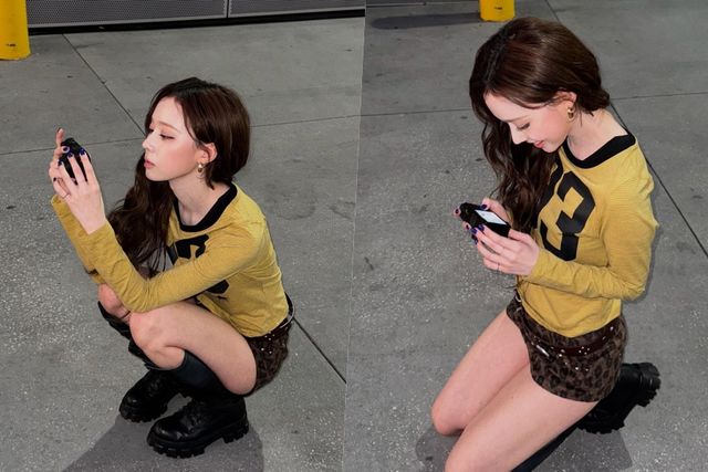 공개된 사진 속 윈터는 촬영 휴식시간인 듯 길에 쭈그려 앉아 카메라를 만지고 있는 모습이다. 머스터드 컬러 티셔츠에 레오파드 초미니스커트를 입은 윈터는 너무 짧은 치마 탓에 앉아 있기가 불편한 듯 무릎을 꿇고 있다. 이내 과감히 쭈그려 앉은 윈터는 초슬렌더 몸매로 군살 제로 허벅지를 드러내 눈길을 끌었다.