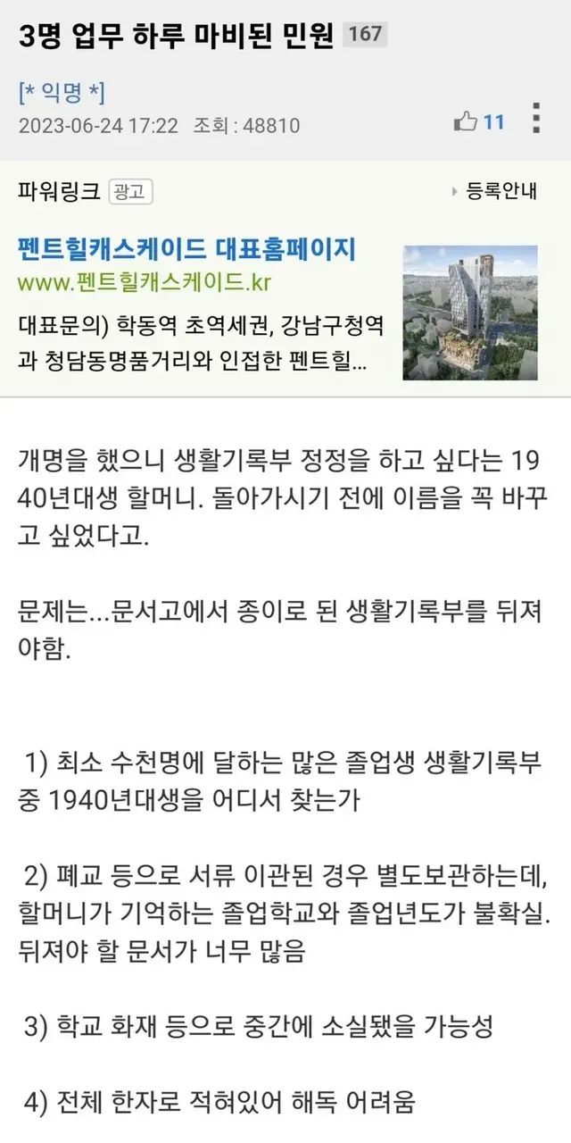 [스압] 1명때문에 공무원 3명 업무가 마비된 민원 논란,,