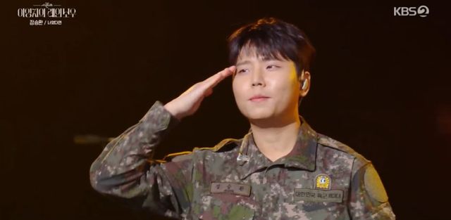 이날 ‘더 시즌즈’ 최초로 군복을 입고 등장한 정승환은 오프닝 곡으로 드라마 ‘또 오해영’ OST ‘너였다면’을 불렀다. 정승환만의 울림이 있는 목소리로 진한 여운을 남겼다. 특히, 정승환이 관객석으로 마이크를 넘기자 곧바로 떼창이 터져 나와 눈길을 끌었다.
