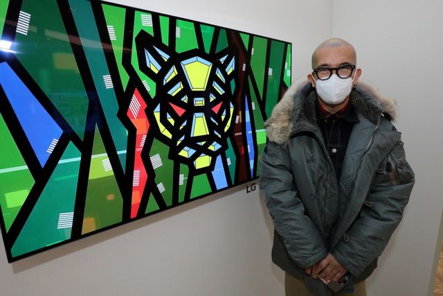 2022년 경기도 스타필드하남 센트럴 아트리움에서 열린 'Amulet 호령전 범을 깨우다' 전시 개막식에서 구준엽(가수) 작가가 자신의 작품 'Dance with Tiger Tiger''을 소개하고 있다. / 뉴스1
