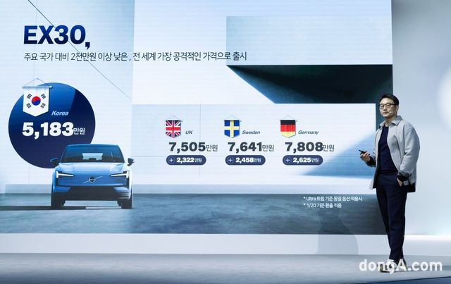 이날 현장을 찾은 이윤모 볼보코리아 대표는 “EX30는 동급 최고 성능과 안전옵션을 탑재하고, 5년·10만㎞ 무상 보증을 받을 수 있다”며 “이를 다 합치면 가격은 독일 고급 브랜드와 비교해 최소 20% 이상 저렴하다”고 강조했다.