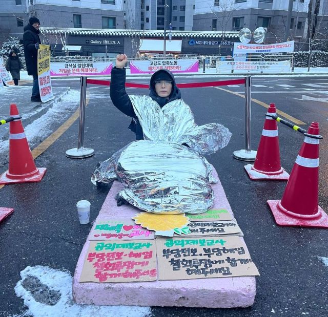 A학교 관리자들은 사건을 제대로 해결하기는커녕 저를 다른 학교로 내쫓았습니다. 하지만 피해 학생들을 두고 이대로 떠날 수는 없었습니다. 부당하게 전보된 학교로의 출근을 거부하고 다시 A학교로 되돌아가기 위한 싸움을 시작했습니다. 지난해 가장 추운 날 시작한 싸움이 1년을 지나 지금 다시 추운 겨울을 서울시교육청 앞에서 가슴 시리게 맞이하고 있습니다.