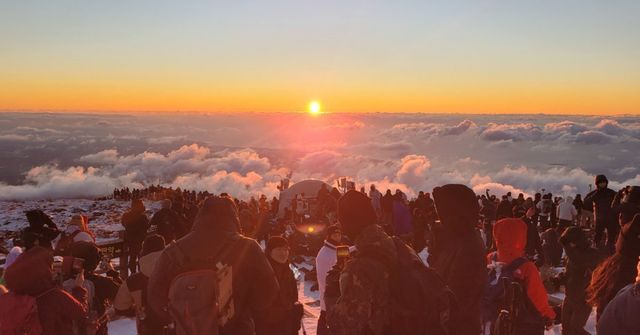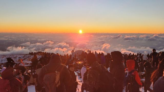 을사년 첫날인 지난 1월 1일 한라산 백록담을 찾은 해맞이 등산객들이 일출을 바라보며 저마다의 소원을 빌거나 기념 촬영을 하고 있다. / 연합뉴스