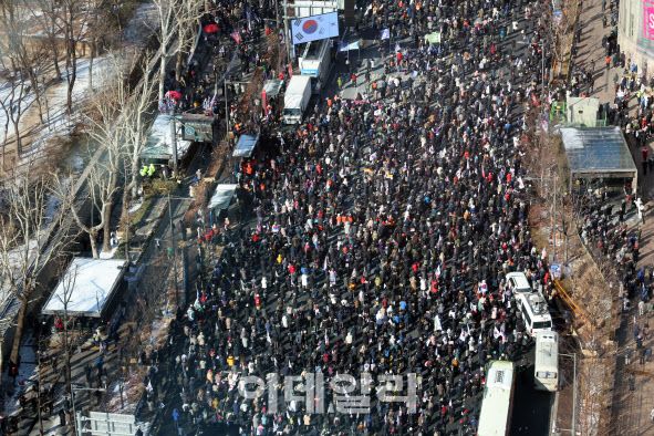 같은 날 오후 3시 헌재 인근인 안국역에서는 촛불행동 주최의 탄핵찬성 집회가 열렸다. 김은진 촛불행동 공동대표는 “정치권에서는 국민의힘이, 거리에서는 전광훈 일당이 서부지법 폭동도 모자라 연일 헌재를 협박하고 공격을 선동하고 있다”고 꼬집었다. 이어 “그들은 이미 탄핵 불복의 명분을 조성하고 있다”고 부연했다.