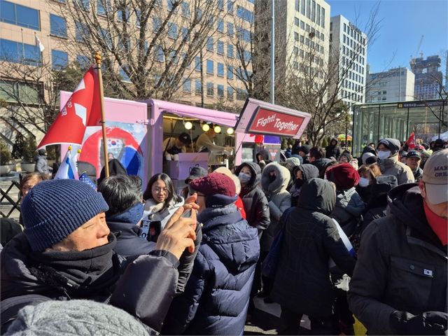 차가운 바람을 맞으며 길게 늘어선 줄 속에서 시민들은 서로 어묵 한 그릇을 나누며 격려했다. "집회장에서 이렇게 실질적인 지원을 받으니 더 힘이 난다"는 한 시민의 말처럼, 단순한 집회를 넘어 국민이 직접 참여하고 체감하는 연대의 장이 만들어졌다.