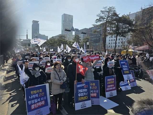 8일 낮 12시부터 오후 2시까지, 세이브코리아 주최·주관으로 열린 '국가비상기도회'에는 수많은 국민이 모여 대한민국의 자유를 지키겠다는 강한 의지를 표출했다.