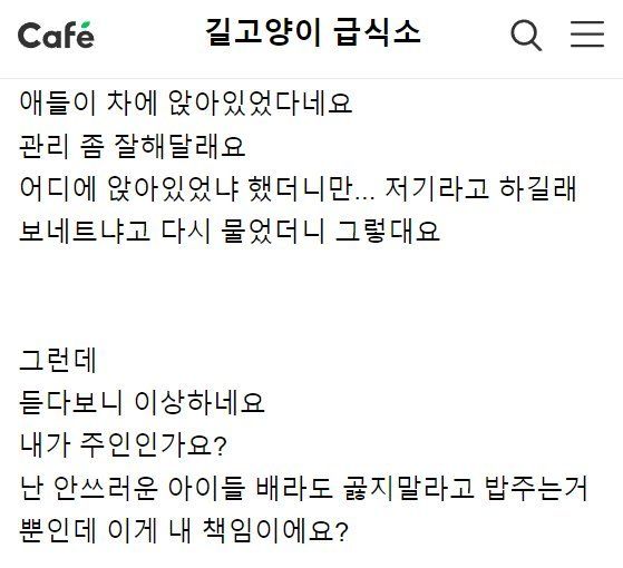 ??? : 이게 내 책임이에요? (차 주변에 길냥이 사료를 뿌리면서)