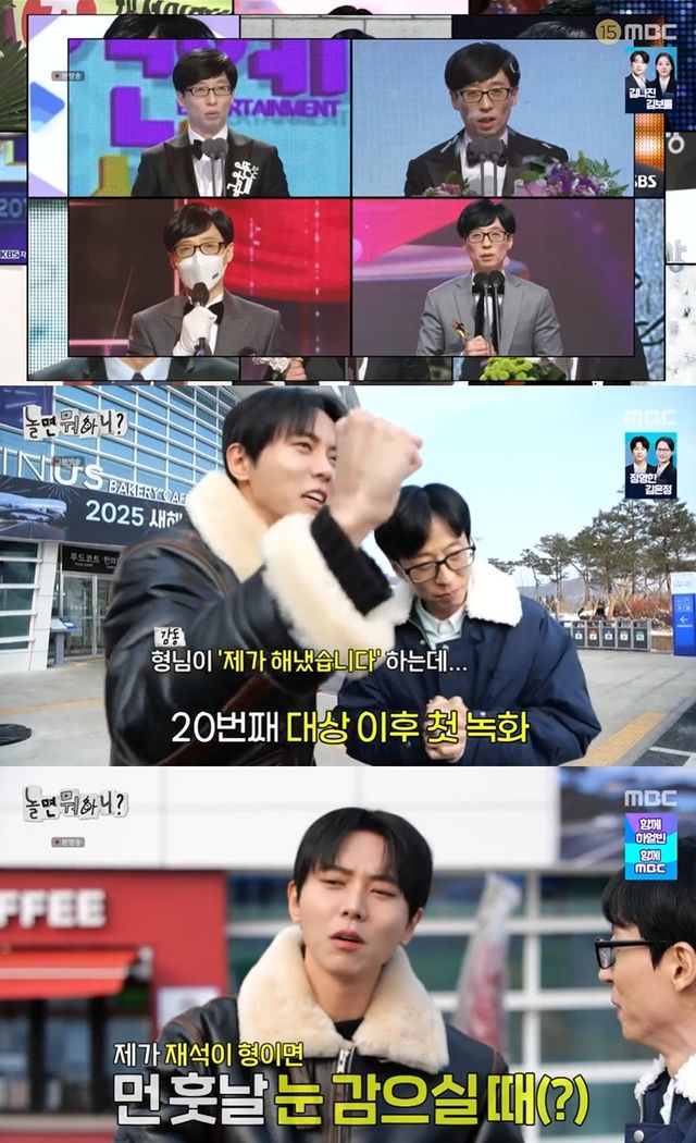 유재석은 "2005년 KBS에서 첫 대상을 받고 2025년에, 20년 만에 20개를 받았다. 신기하더라"라고 밝혔다.