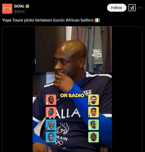 영국 매체 '골닷컴'은 야야 투레와의 인터뷰 영상을 자신들의 사회관계망서비스(SNS)에 게재했다.