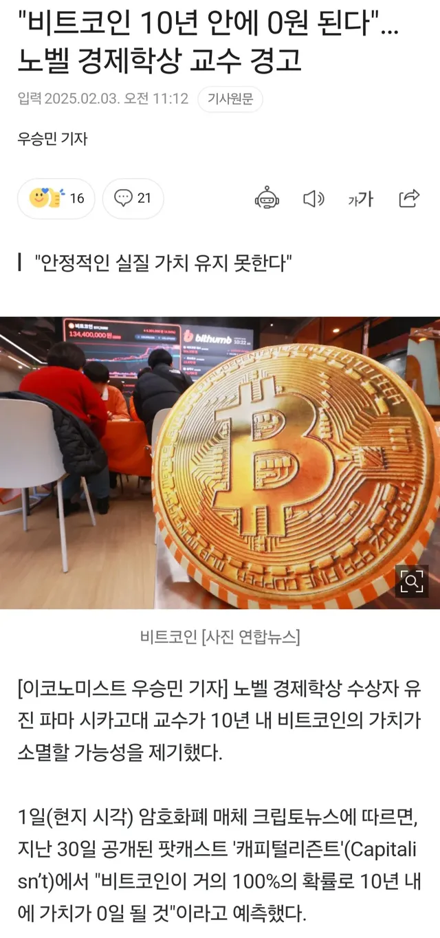 비트코인은 거의 100% 확률로 0원이 될 것이지만 이것이 반드시 맞을 것이라고 단정지을 수는 없다고 함