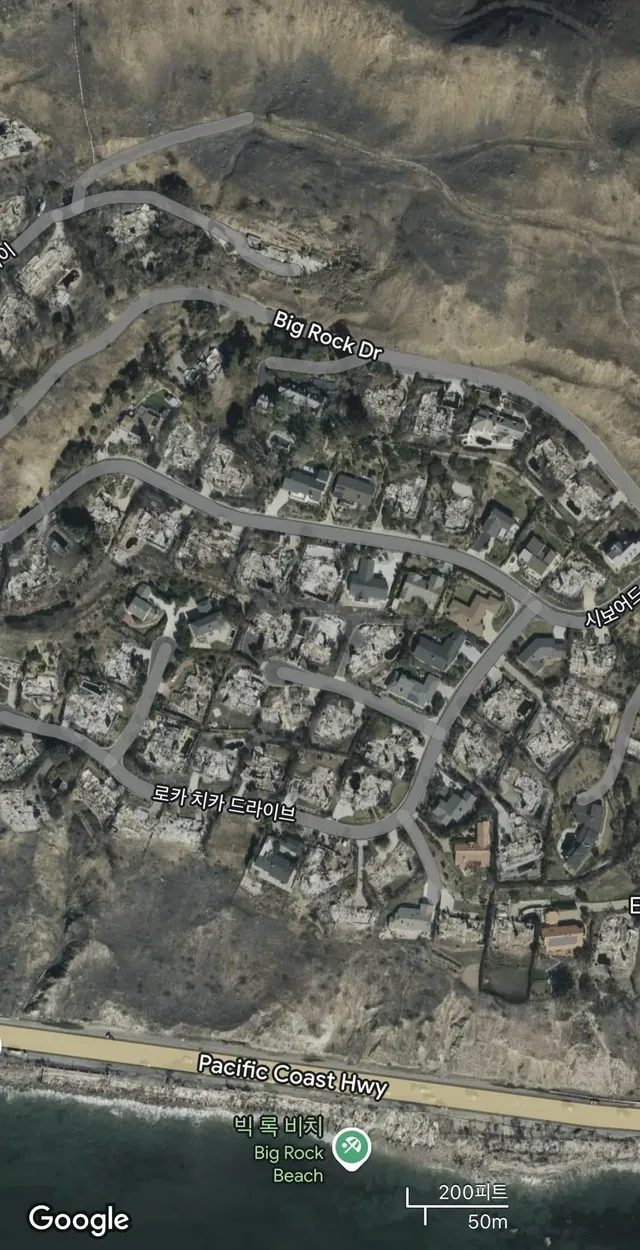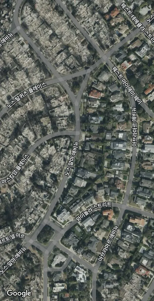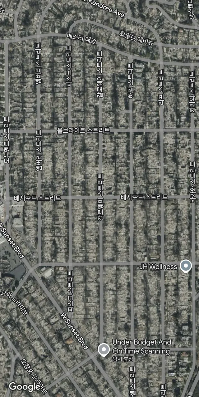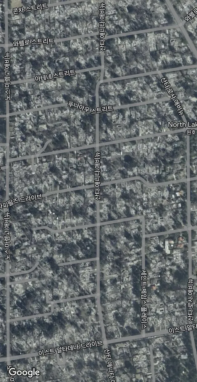 LA화재 전후 위성사진 비교