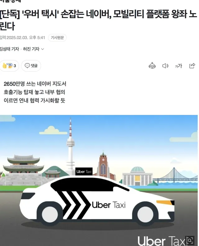 갈라파고스로 틀어막은 우버 택시 네이버가 지도에 호출 넣는다함