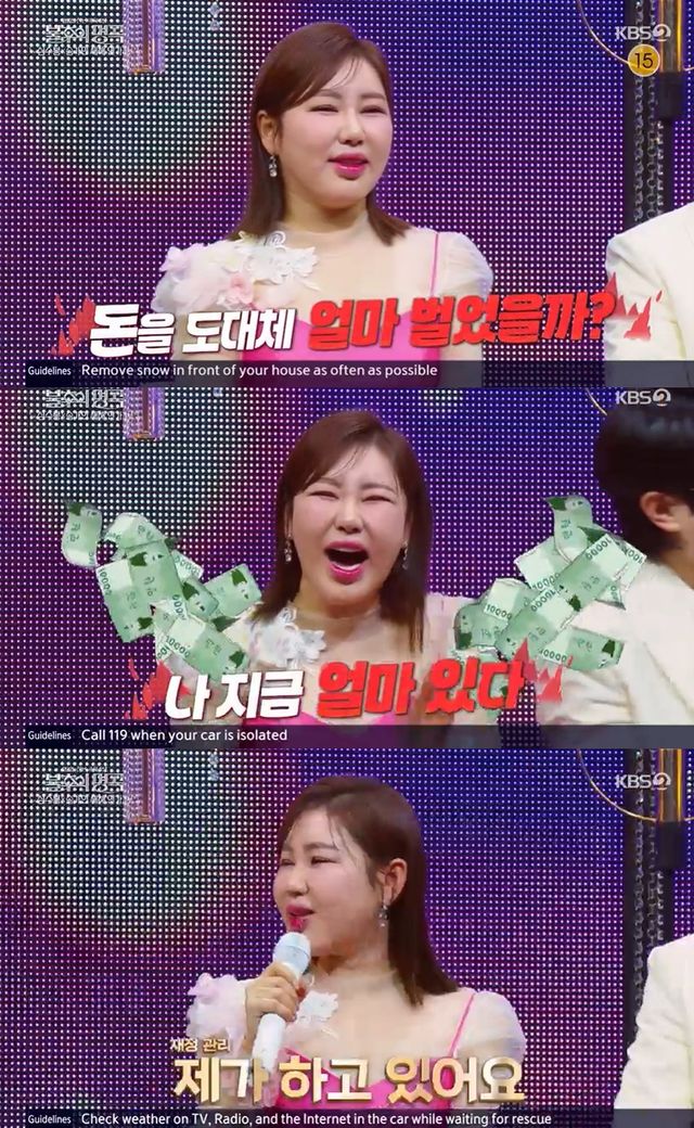 이에 송가인은 "재정 관리는 제가 하고 있다. 솔직히 말씀드리면 마이너스 통장이다"라고 전했다.