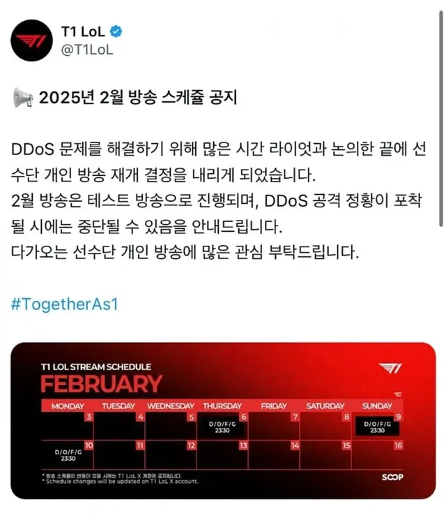 아직 디도스 해결한 건 아니라서 결국 방송 중단 될 것 같기는 함