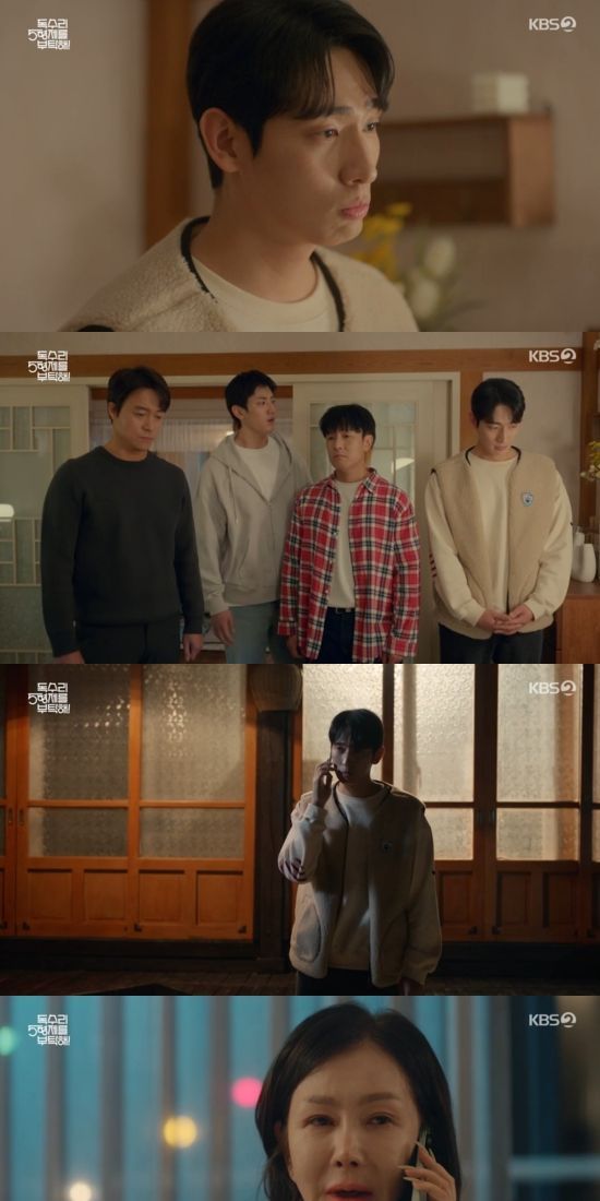 8일 방송된 KBS 2TV 새 주말드라마 '독수리 5형제를 부탁해' 3회에서는 마광숙(엄지원 분)이 오장수(이필모)와 함께 살던 집에 남은 모습이 그려졌다.