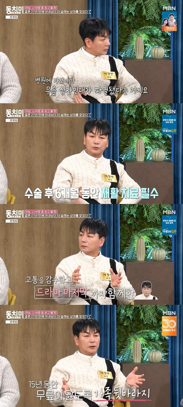 이어 이철민은 "수술하면 6개월을 재활 받아야 정상적인 활동을 할 수 있다고 했다. 수술해버리면 촬영 드라마에서 하차하게 된다. 첫날인데"라며 "그래서 수술 못하고 그냥 보조가를 차고 촬영에 갔다. 근데 감독님도 만류했는데 제가 완고하게 한다고 하니 하게 해주셨다"고 전했다.
