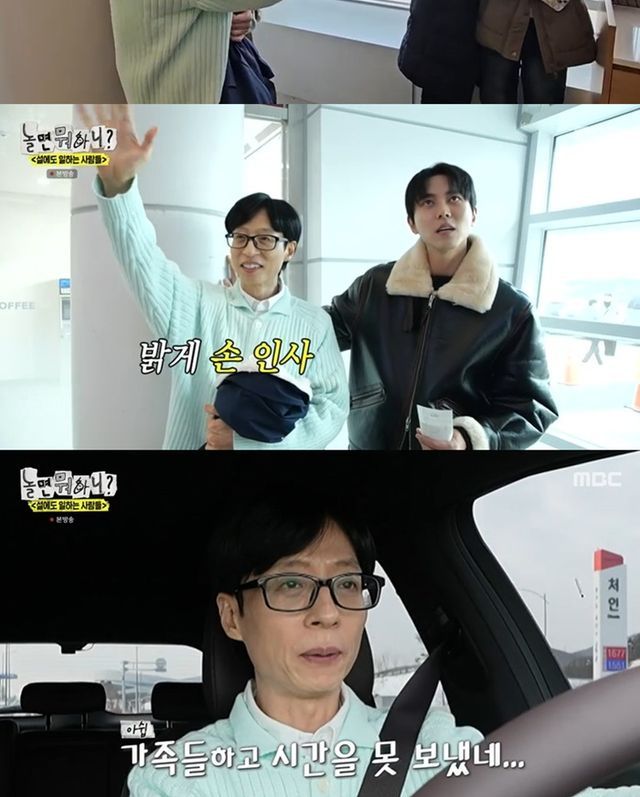 설 연휴에 붐비는 고속도로 휴게소에 등장한 유재석과 주우재에 시민들은 반가움을 표했다.