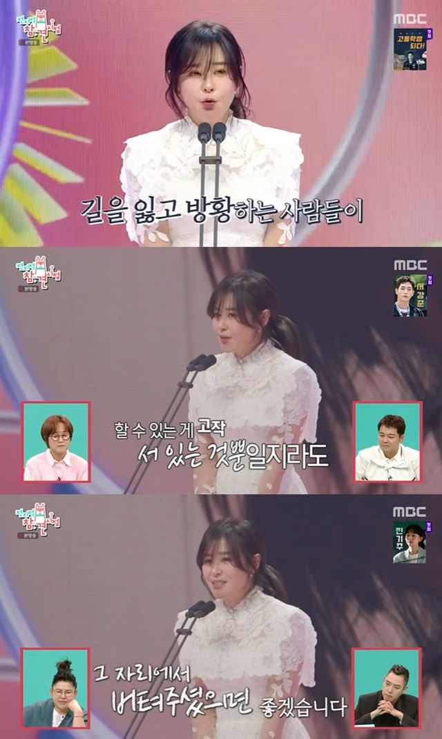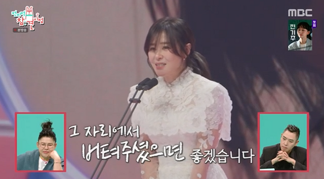 한편 송은이는 지난 '2009년 SBS 연예대상'에서 브라운 아이드 걸스 '아브라카다브라' 축하공연을 할 때 드레스를 입었다고 밝혔는데, 당시 송은이의 모습이 방송에 송출되면서 스튜디오는 웃음바다가 됐다.