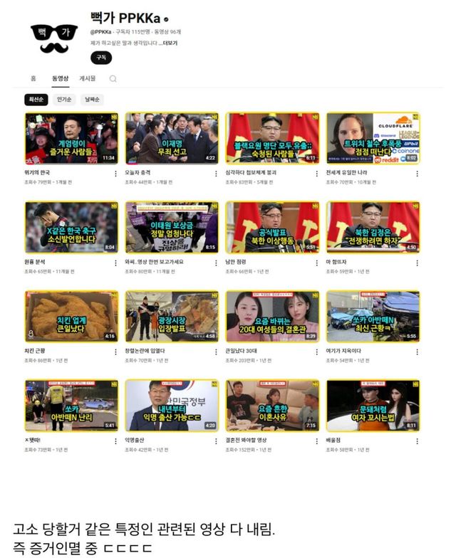 영상을 지워서 고소 못하나 했는데 어떤 유튜버가 다 다운받아놓음