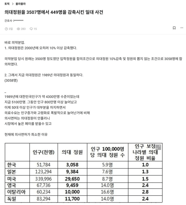 27년간 증원 0명이라고 하는데