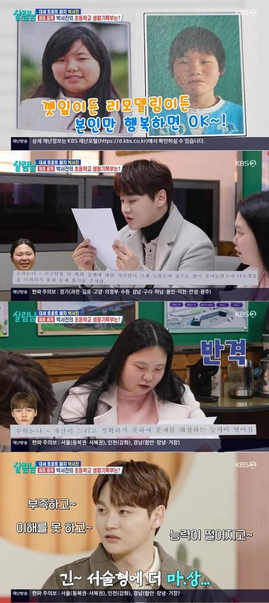 8일 방송된 KBS2 '살림하는 남자들 시즌2'에서는 축사를 위해 모교를 방문한 박서진과 박효정 남매의 모습이 그려졌다.