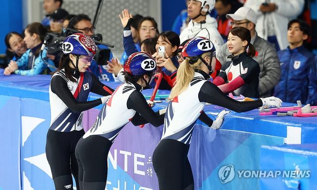 이날 여자계주 준결승이 먼저 진행됐다. 한국은 2조에 속해 일본, 인도와 겨뤘다. 김건희, 이소연, 노도희(화성시청), 심석희(서울시청)가 출전해 4분13초944로 가뿐히 1위에 올랐다. 일본이 4분26초093으로 남은 결승행 티켓 한 장을 얻었다.