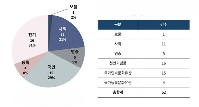 이에 따르면 2008년부터 2023년까지 수집된 국가유산 재난 피해는 전국적으로 총 1001건에 이른다. 풍수해가 849건으로 가장 많고 지진 64건, 화재 52건, 동해 36건 순이다.