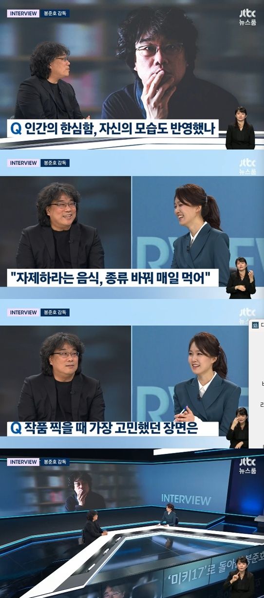 9일 방송한 JTBC '뉴스룸'에는 영화 '미키 17'로 돌아온 봉준호 감독의 인터뷰가 담겼다.
