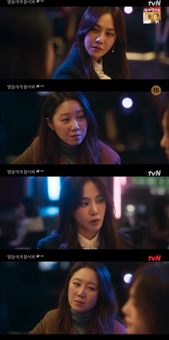 9일 방송된 tvN 토일드라마 '별들에게 물어봐' 12회에서는 이브 킴(공효진 분)이 최고은(한지은)에게 공룡(이민호)을 향한 진심을 털어놓은 모습이 그려졌다.