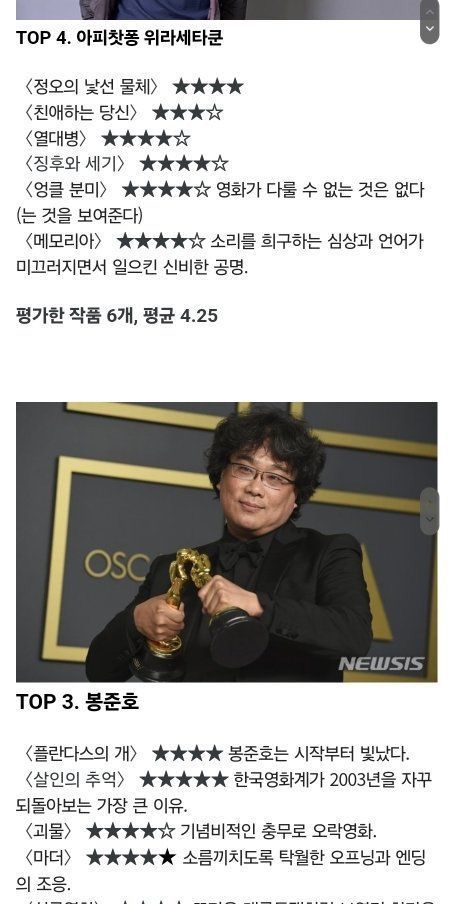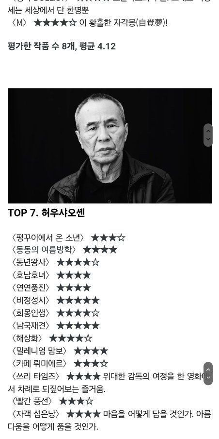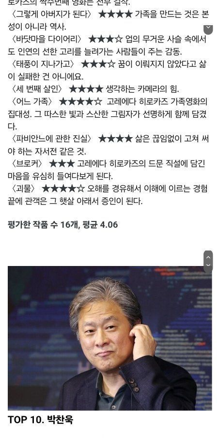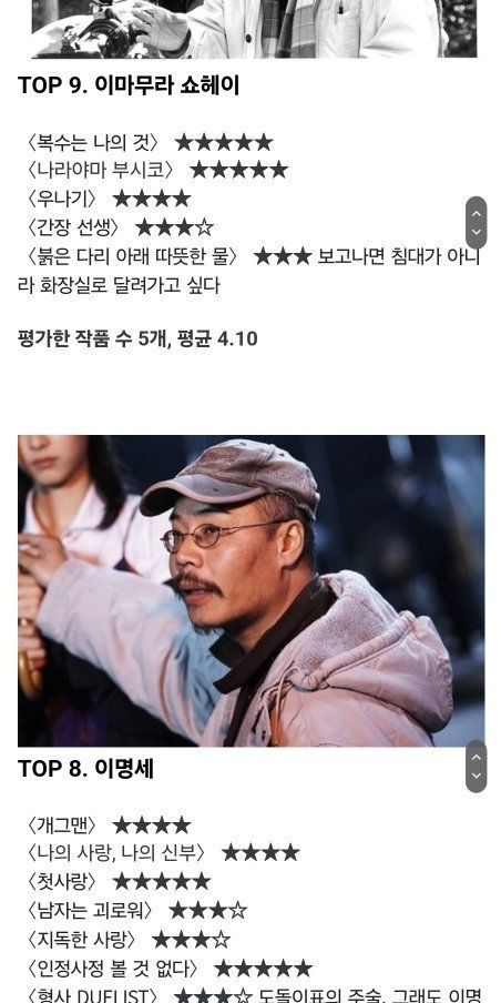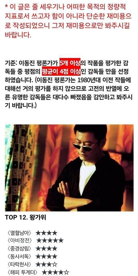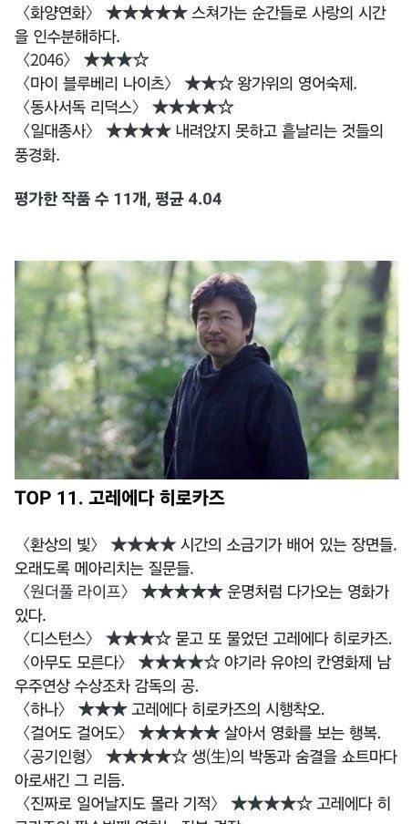 이동진의 아시아 거장 감독들 평점 순위 TOP12