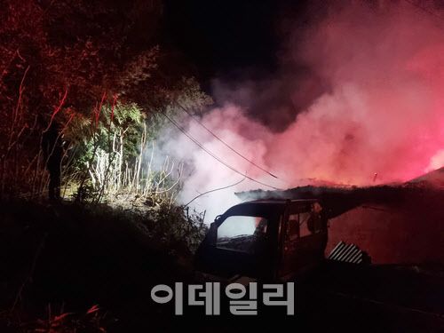 불에 탄 주택 안에서는 A(67)씨가 숨진 채 발견됐다. 화재 초기 불길이 주택 뒤편 야산으로까지 번졌으나 20여 분 만에 진화되기도 했다.