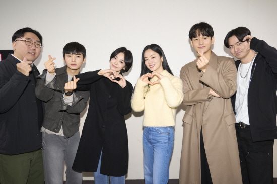 영화를 완성한 ‘검은 수녀들’의 주역 배우들이 손하트를 만들며 애정 어린 인사를 남겨 관객들의 관심에 화답했다.