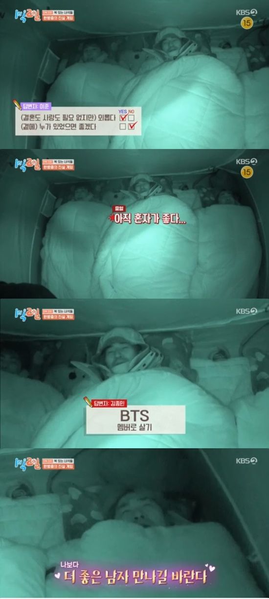 이준은 "외롭다?"는 질문에는 그렇다고 해놓고는 "누가 있었으면 좋겠다?"는 질문에는 "외롭지만 그건 아니다. 아직 혼자가 좋다"고 말했다.