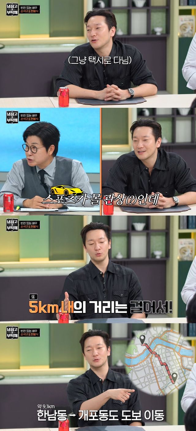이에 손석구는 "택시 타고 다니거나 웬만하면 5km 내의 거리는 다 걸어 다닌다. 한남동에서 개포동까지도 걷는다"고 말해 놀라움을 안겼다.