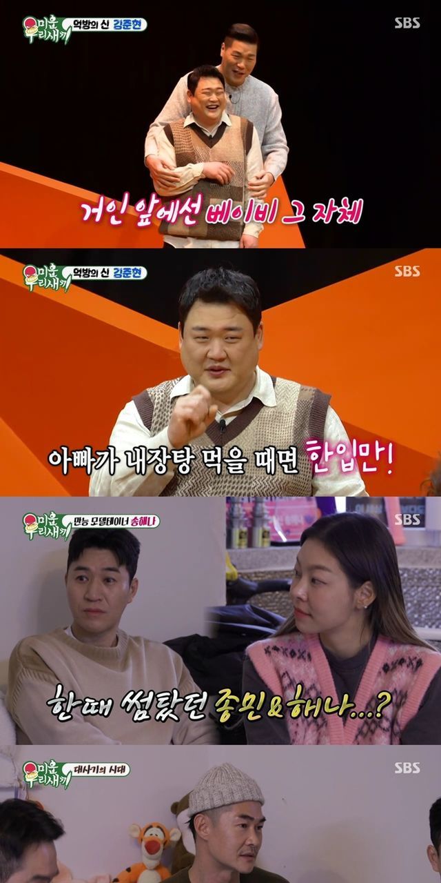 이날 스페셜 MC로 출연한 ‘먹방의 아이콘’ 개그맨 김준현은 딸들의 사진을 공개하며 “먹성이 엄마 아빠를 따라온다. 내장탕을 먹고 있으면 옆에 와 ‘한입만’ 달라고 한다”라며 “국물 요리를 좋아해 아무래도 술꾼 기질이 보인다”라고 너스레를 떨었다.