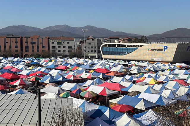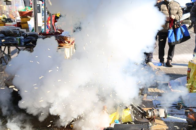 2번 진출입로서 아이들은 귀를 양손으로 틀어막고, 곧 터질 듯 돌아가는 뻥튀기 기계를 바라본다. “뻥이요!” 군밤과 옥수수, 쌀, 서리태 등이 차례로 바구니에 담긴다. 원하는 재료를 맡기면 뭐든 튀겨준다. 겨우내 뜨끈한 방안에 앉아서 먹을 겨울 간식 마련으로 제격이다.