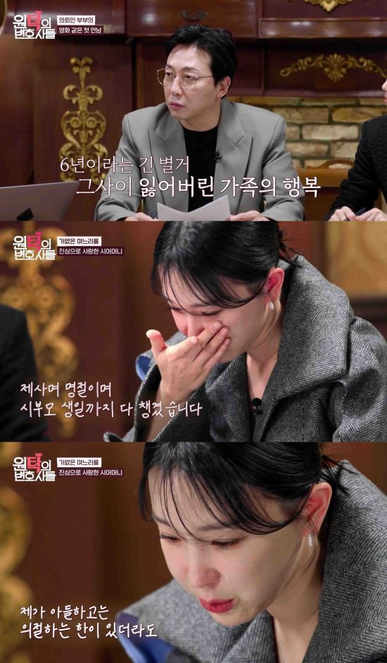 여기에 아내가 이혼을 거부할 수밖에 없는 숨겨진 이유가 드러나며 스튜디오는 물론 안방극장까지 숙연하게 만들 예정이다. 특히 시어머니가 의뢰인에 대한 애틋한 마음이 공개돼 촬영장 분위기는 한층 더 무거워졌다는 후문.
