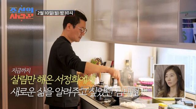 10일 밤 10시에 방송되는 TV CHOSUN ‘조선의 사랑꾼’에서는 서정희의 ‘6살 연하’ 남자친구 김태현이 아침을 준비하는 모습이 포착된다. 능숙한 솜씨로 서정희를 위해 요리를 준비하던 그는 “서정희 씨가 평생 너무 많은 살림을 한 것 같다. 저랑 있을 때만큼은 이제 살림을 안 했으면 좋겠다”고 애정을 드러냈다.