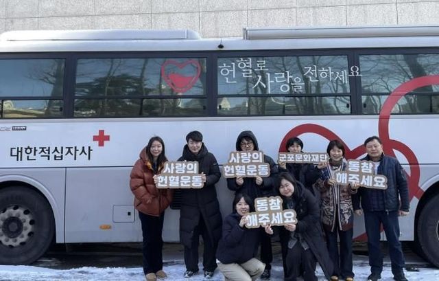 [와이뉴스] 군포문화재단은 지난 7일, 대한적십자사 경기혈액원과 함께 군포문화예술회관 야외 버스전용 주차장에서 임직원들과 함께 ‘사랑의 헌혈운동’ 단체헌혈을 진행했다.