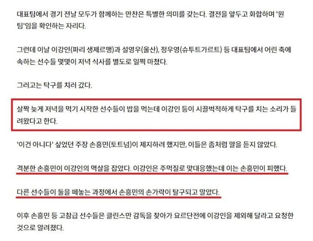격분한 손흥민이 이강인의 멱살을 잡았다.
