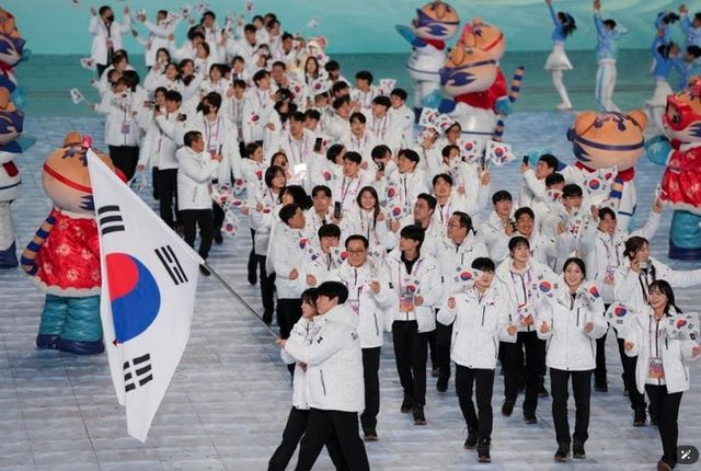 | ▲ 7일 '제9회 동계 아시안게임' 개막식에 입장하는 한국 선수 대표단. (사진/신화통신) |