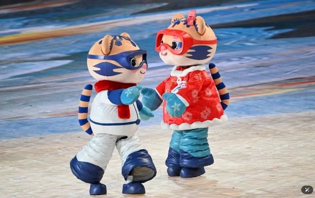 | ▲ 7일 '제9회 동계 아시안게임' 개막식 현장에서 촬영한 마스코트 빈빈(濱濱)과 니니(妮妮). (사진/신화통신) |