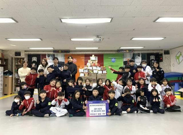 이번 성품은 태권도장 소속 원생들이 각 가정에서 선행을 실천하고 보상으로 받아오며 십시일반 마련한 것으로 그 의미가 깊다.