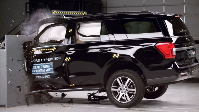 포드 익스페디션 스몰 오버랩 충돌 실험 장면. / IIHS 유튜브 갈무리