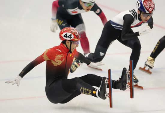 남자 5000m 계주 결승에서 한국과 중국 선수들 간의 충돌이 발생했다.