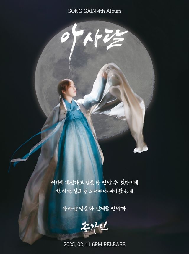 송가인은 10일 오전 9시 공식 SNS 채널을 통해 정규 4집 ‘가인;달’ 더블 타이틀곡 중 하나인 ‘아사달’ 리릭 포스터를 공개했다.
